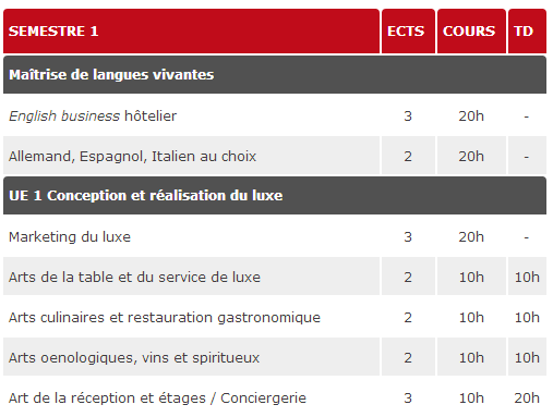 尼斯大学在本科L3阶段有个Licence Professionnelle Arts et Techniques de l’Hôtellerie de Luxe(ATHL)